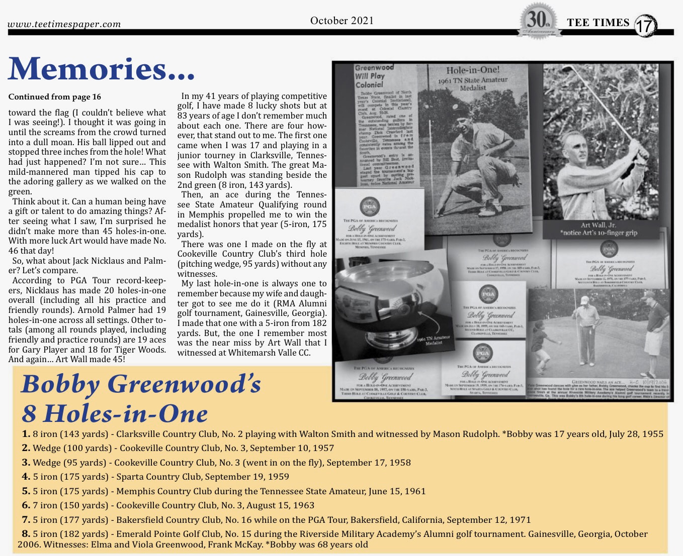 This was my senior year at North Texas State, as a First Team NCAA All-American, I was selected to take on Nelson, who was the captain of the professional team. At 51 years old, Nelson was way past his prime, but here is the man who holds the record for winning 11 consecutive tournaments on the PGA Tour. However today, at 83 years of age, I can look back and see that 51 is not that old. Nelson shot a 68 that day! I made a birdie on the last hole to beat Byron 1-up. That evening we went to Byron Nelsonâs ranch in Roanoke, Texas for a lavish buffet, presentation of prizes and speeches from several Texas dignitaries and the PGA Tour pros.