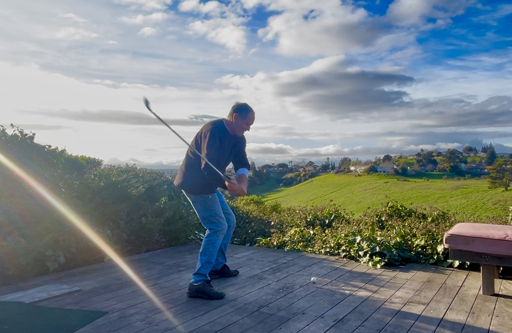 Then we took them out back to the deck and I got to watch him flush a bunch of 3 irons in a row. Put a good swing on them and they move the ball out there just fine!