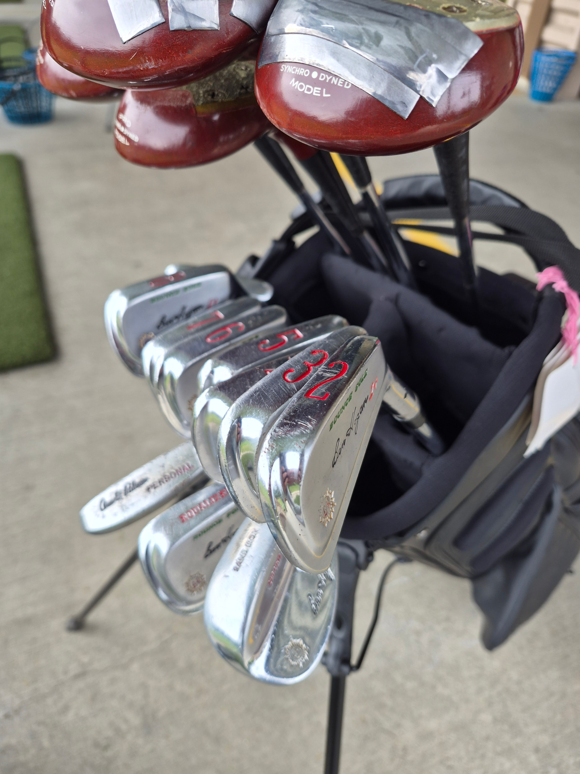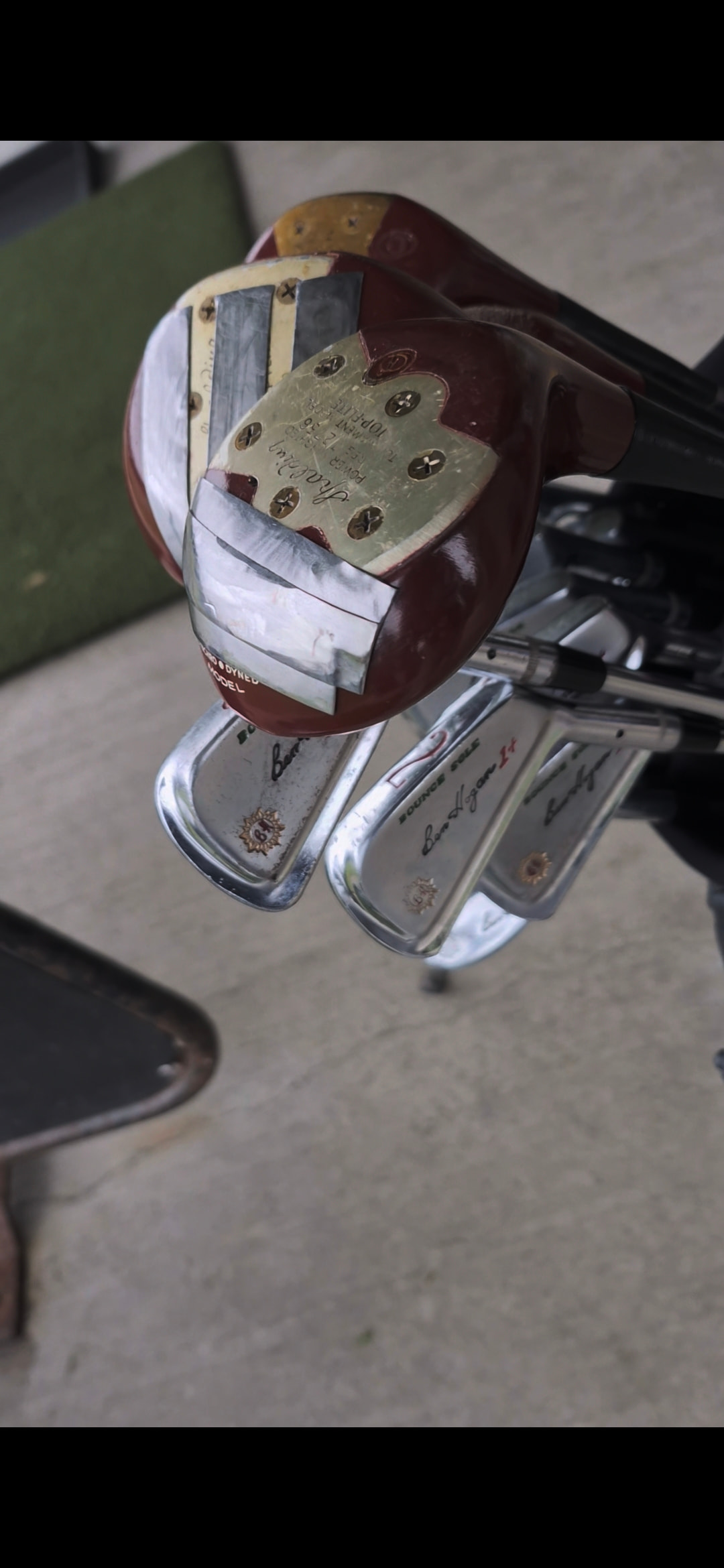 Hogan plus1 set 2-E added hogan sand iron and its heavy! I love it. Wasn’t sure how 6* flat would go…Well it was awesome. Spalding Wood set is stock not sure lie on those but around 14.5oz on the 1w. Shafts are original heavy stiff. Need some technical help to hit those better