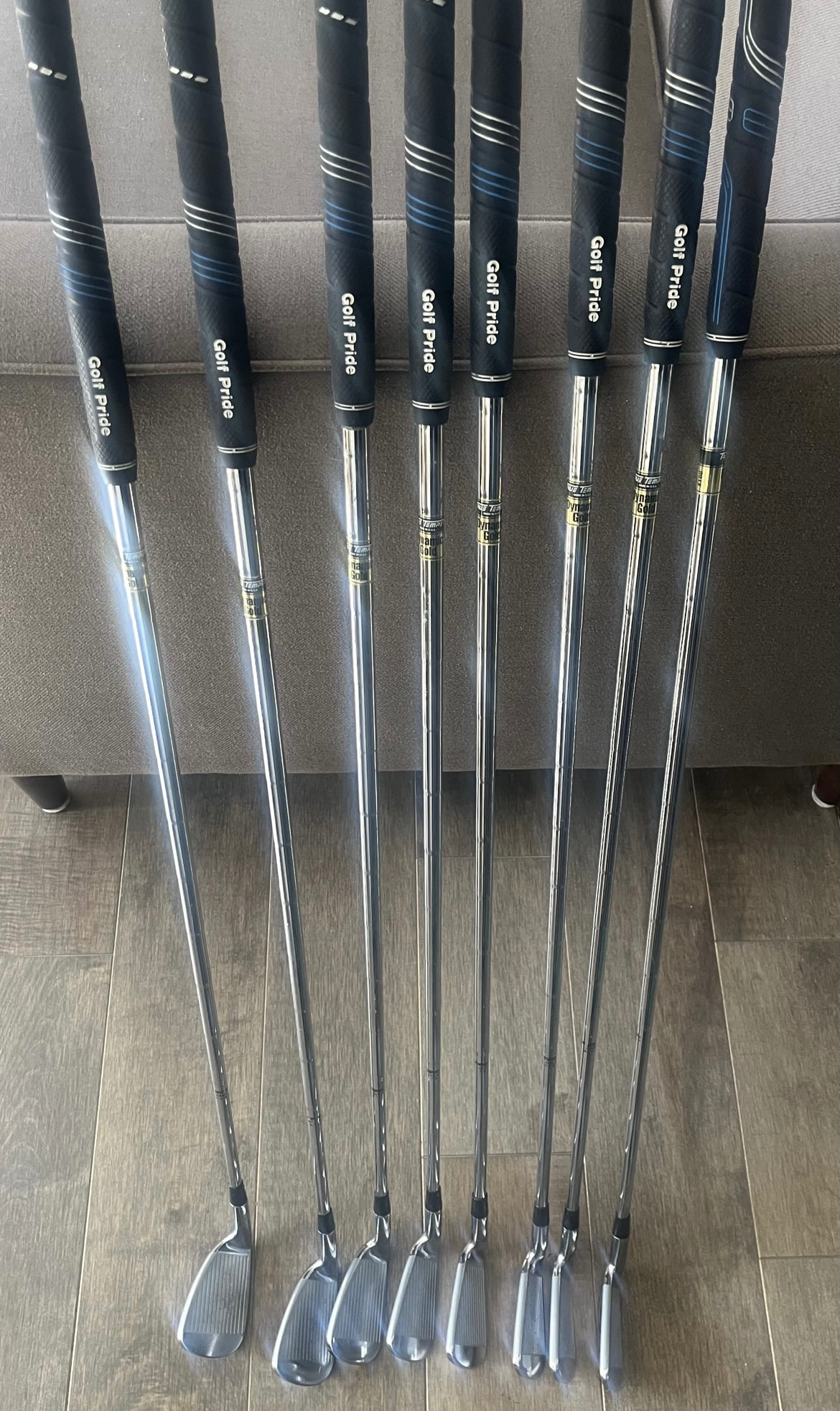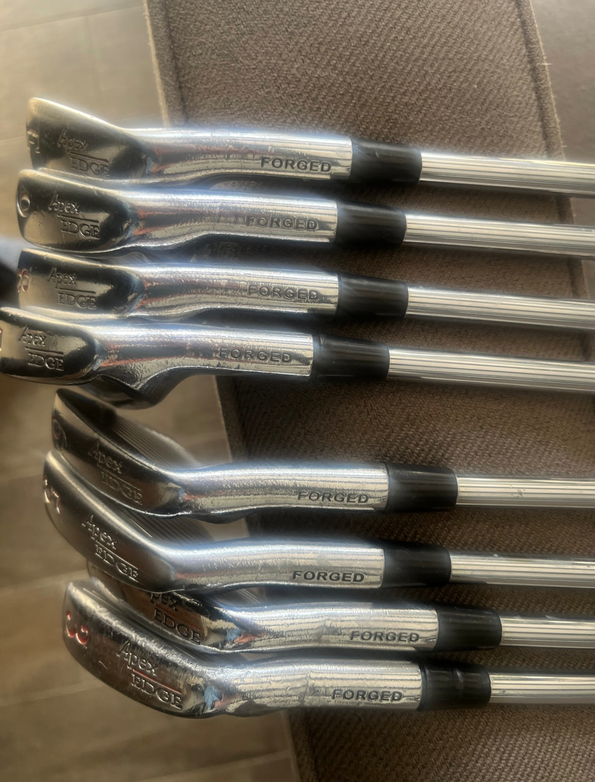 $200 plus shipping. Now long time ABS student with extra irons. 3 iron was by bag banger and got a few dings using over rocks. Pole shafts and FLAT.