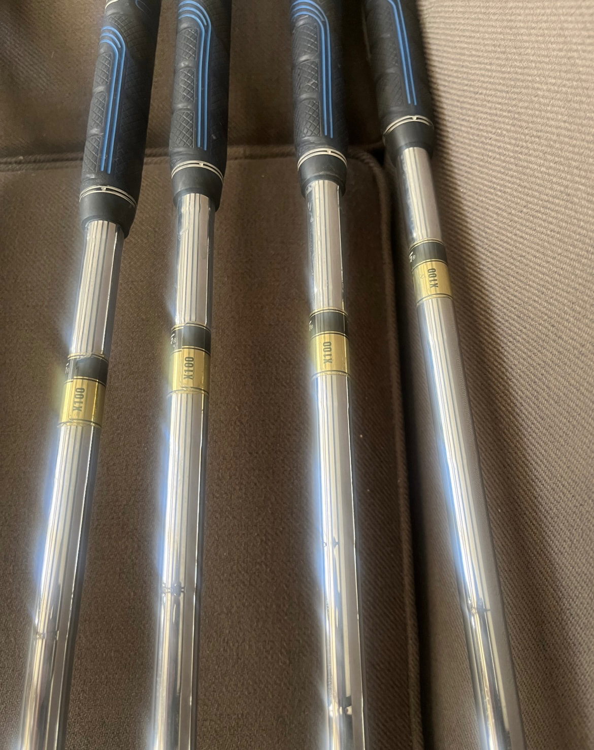 Grips are CP2 wrap midsize. Plenty of life left. X100 shafts too. Poles. Checked them with weights aka Lag Style shaft flex check.