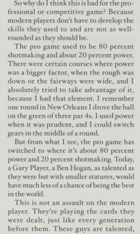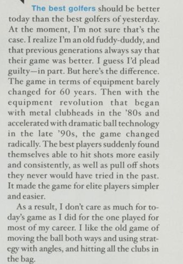 Also note his comments about a desire to return to persimmon and balata on courses of suitable length. Good to see!!