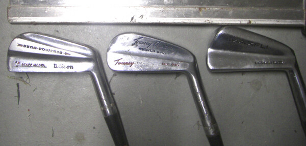 I currently have some MacGregor 985’s (not the Tommy Armour, but the Tourney Custom), 1963 Hogan IPT’s and some 1983 Hogan Apex PC’s. I also have some current Mizuno MP-62’s and hit the MP-67’s for about a month last year as well as the Cobra MB blades.