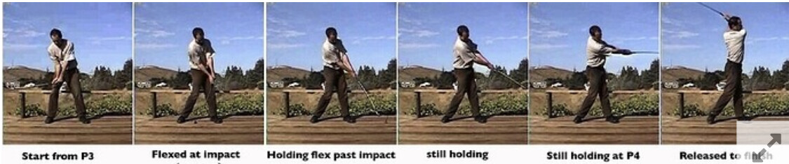 That’s not a golf swing. Of course from that position you can just drive the force across the shaft and bend it back. That’s not what we do in a golf swing where the club throws outside the arc of the hands and we bend hand path and are pulling up and back on the club.