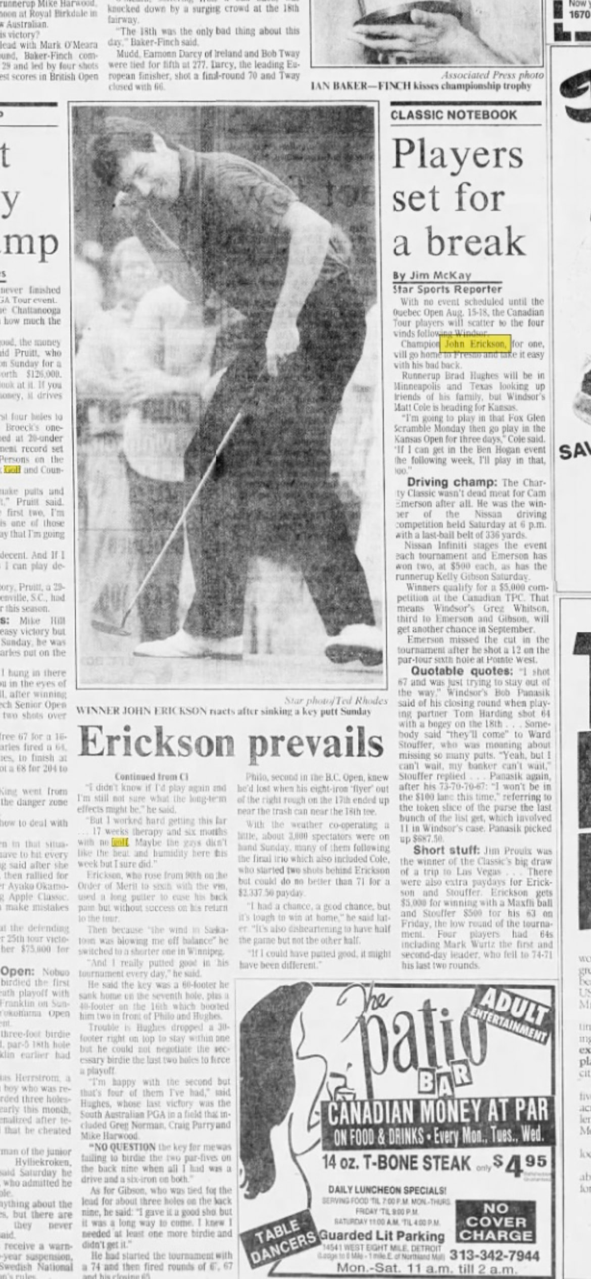 Playing in the Canadian PGA Championship, apparently the journalist was looking for an outside story about tour wives, girlfriends etc. Didn’t play that well this week in Winnipeg, but this is one way to draw media attention when the putter isn’t working!