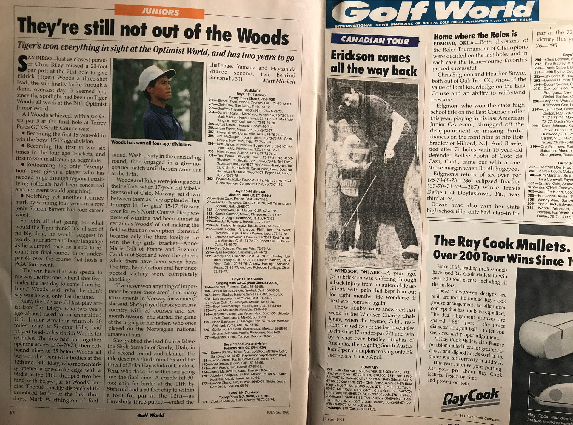 I remember when this came out in Golf World and at the time not having any idea who this kid was on the adjacent page. It’s almost comical really in hindsight. Apparently he was the first player to win Junior World overall as a 15 year old in the 15-17 age division…. having to beat kids two years older than him. Really makes a huge difference at that age. I played Junior World many times staring in the age 11-12 bracket at Mission Bay Golf Course… then 13-14 bracket at Balboa, then 15-17 at Torrey Pines. I never played well down there for some reason. My old touring buddy Vic Wilk won Junior World 3 times. The best thing to come out of it for me was meeting Louis Brown there when I was 17. We roomed together there and have become lifelong friends. We laughed that we were both going to be Bulldogs… Fresno State and Georgia. I would go back east and play the major amateur circuits in the summer and stay with Louis in Newnan Georgia, and we would travel around the East Coast playing all those great events. We would later play both the Canadian Tour and Australian Tours as pros.