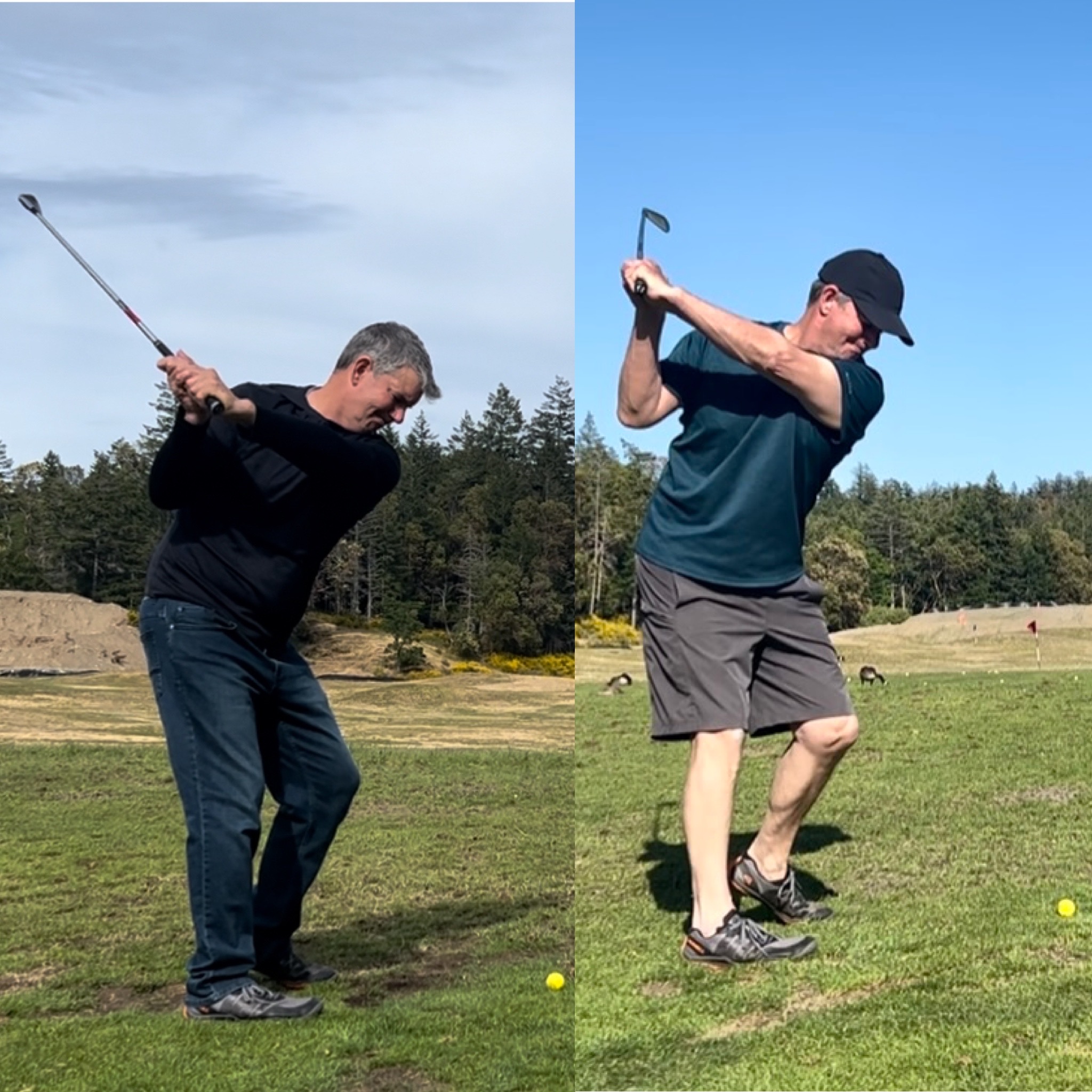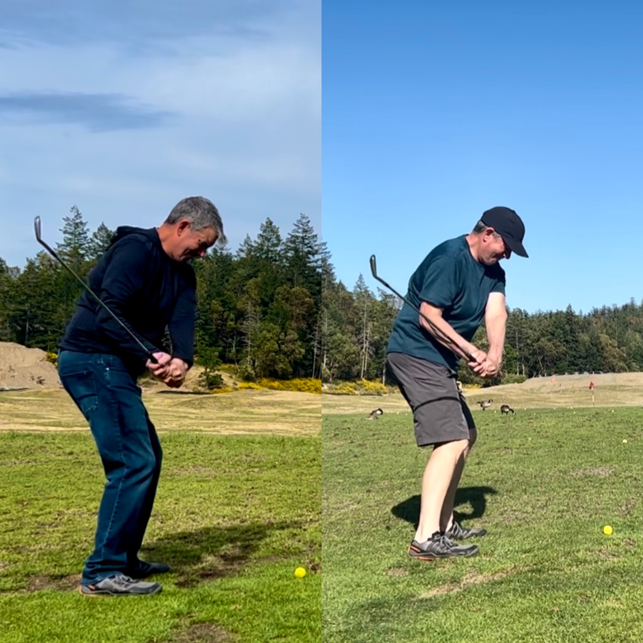 A comparison of my backswing prior to the Hogan Modules. Still work to be done, but quite the difference.