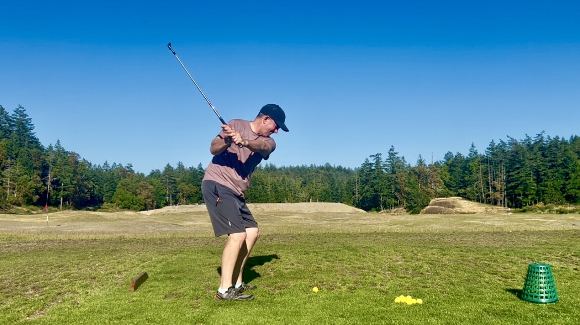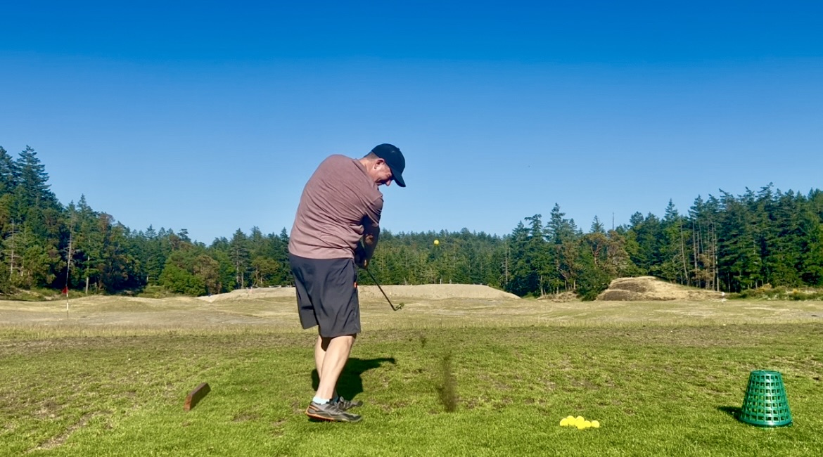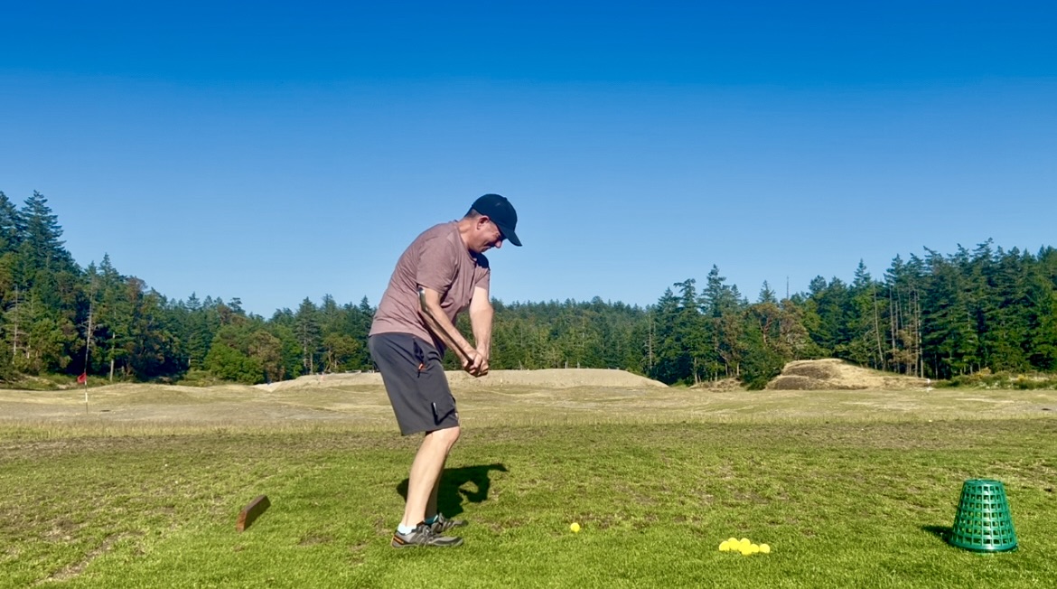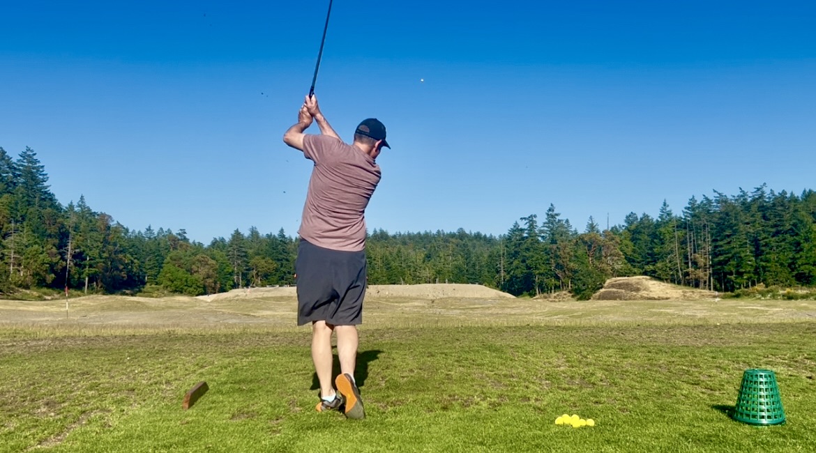 Because I’m partnering a friend in a team tournament at the end of April, I wanted to hit some balls on the range trying to integrate the backswing module into my swing. Ideally I’d wait to actually hit balls later in the modules.